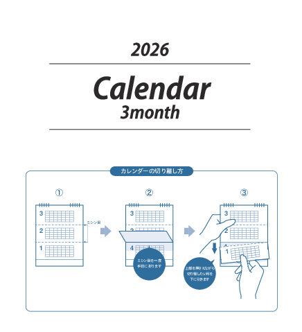 デザイナー名入れ 3か月卓上カレンダー [ZN-01R] 日曜始まり 六曜あり