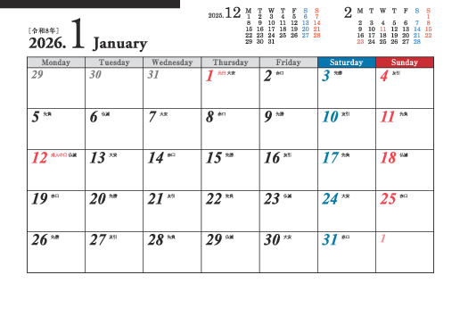 Web上で名入れ カラコレ [DG-02R] 月曜始まり 六曜あり