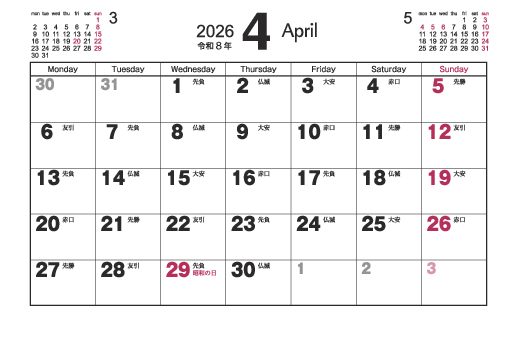月曜始まり 六曜あり