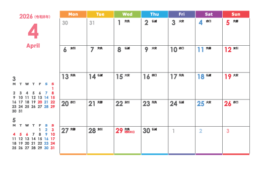 お好きな順に並び替えができる、組み替えタイプの便利な3か月カレンダー