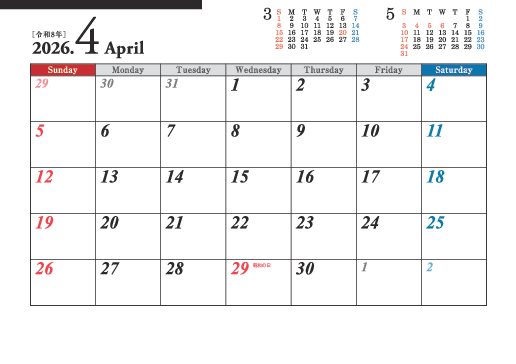お好きな順に並び替えができる、組み替えタイプの便利な3か月カレンダー