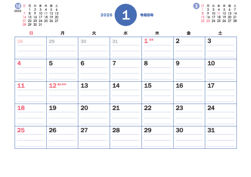 3カ月を一覧できる便利なカレンダーをお客様オリジナルのデータでお作りいただけます