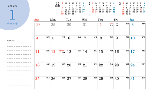 Web上で名入れ カラコレ [DN-11R] 日曜始まり 六曜あり