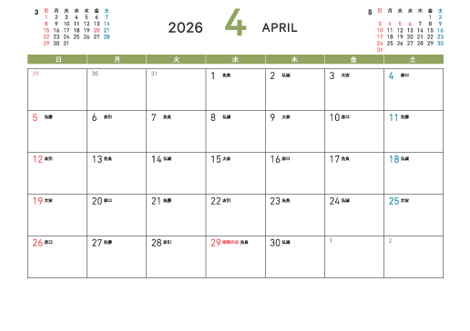 お好きな順に並び替えができる、組み替えタイプの便利な3か月カレンダー