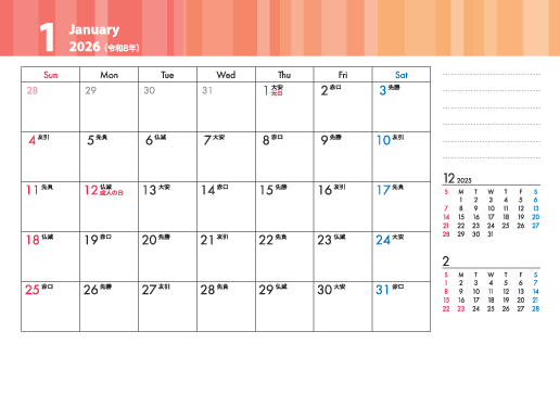 Web上で名入れ カラコレ [DN-18R] 日曜始まり 六曜あり