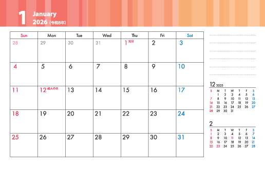 お好きな順に並び替えができる、組み替えタイプの便利な3か月カレンダー