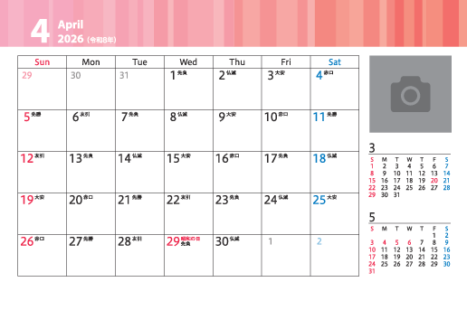 お好きな順に並び替えができる、組み替えタイプの便利な3か月カレンダー