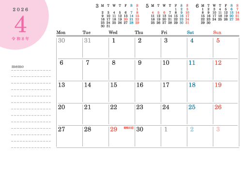 お好きな順に並び替えができる、組み替えタイプの便利な3か月カレンダー