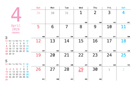 お好きな順に並び替えができる、組み替えタイプの便利な3か月カレンダー