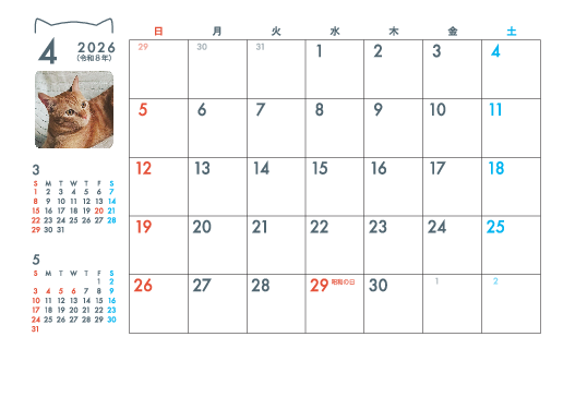 お好きな順に並び替えができる、組み替えタイプの便利な3か月カレンダー