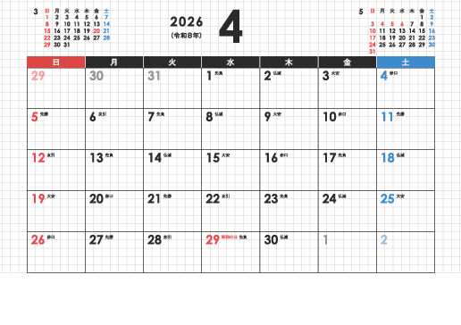 日曜始まり 六曜あり